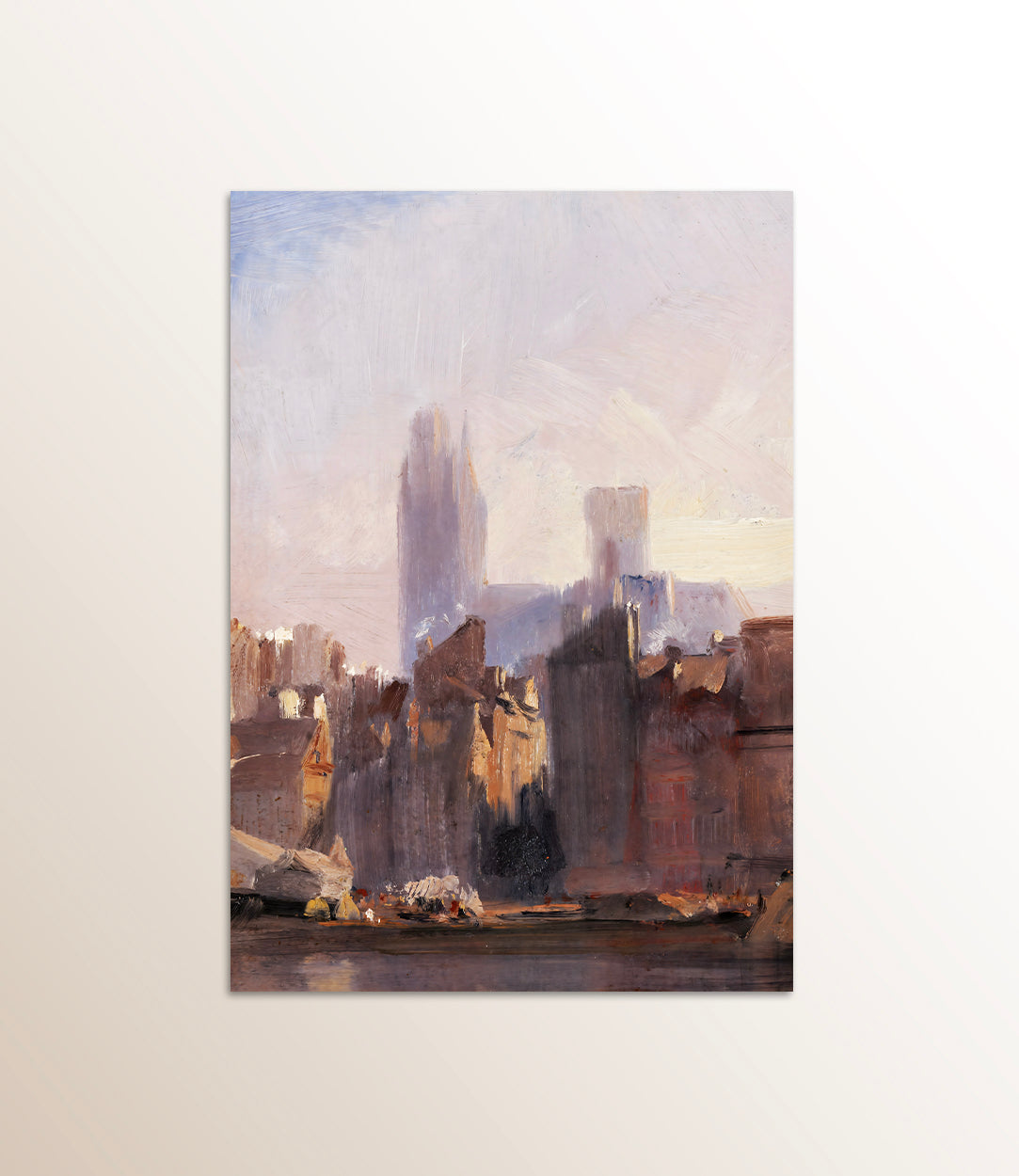 Cologne: The Arrival of a Packet-Boat: Evening captures that serene, golden hour when the day exhales and the world slows down. The river glows with soft reflections, the sky fades into amber and violet tones, and life at the harbour becomes poetry in motion. It’s a quiet moment suspended between movement and stillness — timeless, romantic, and deeply human.