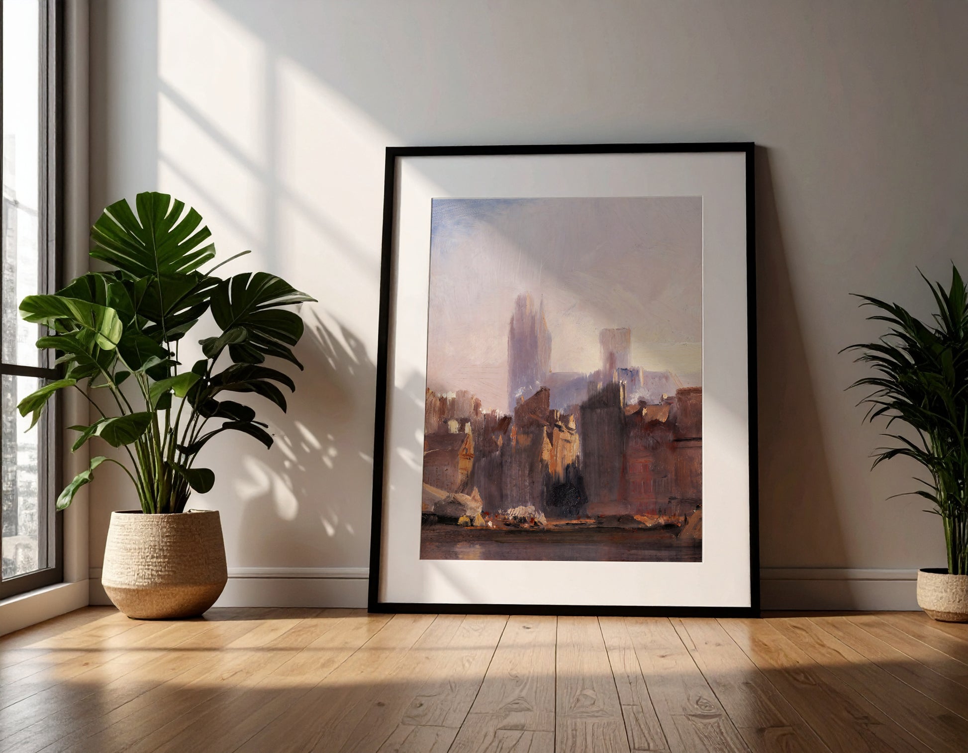 This piece carries a classical soul. Its muted palette and balanced structure make it ideal for interiors that value calm elegance — think textured linens, walnut tones, and warm lighting. Whether placed above a console or framed in a reading corner, it brings that sense of soft grandeur that only art inspired by real light can offer.